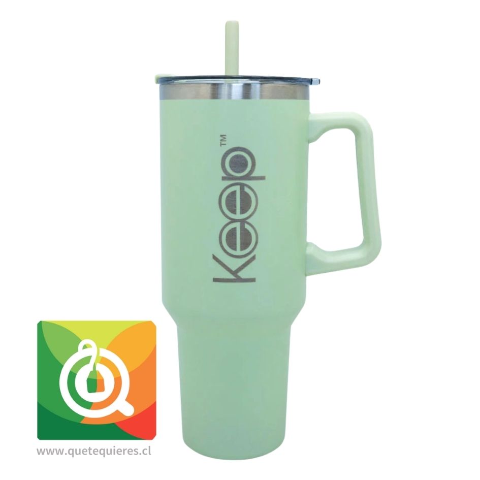 Colorido Mug de la marca keep, que mantiene líquidos fríos y calientes en optima temperatura. Para que puedas llevar tus té, café o tus bebidas donde quiera que vayas. Se puede utilizar con bombilla o directo de la boquilla.
